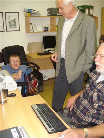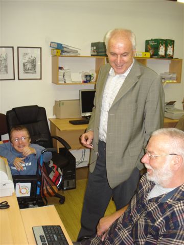 Paní Hana Šnoblová, která vede sociální podnikání pro Spolek Trend vozíčkářů Olomouc seznámila patrony s 8 vozíčkáři a jejich náplní práce, tj. skenování archívních materiálů až do velikosti A0. Poděkování patří firmě Farmak, která si tento předmět podnikání u Spolku Trend objednala a dává tak šanci uplatnění lidem na vozíku.