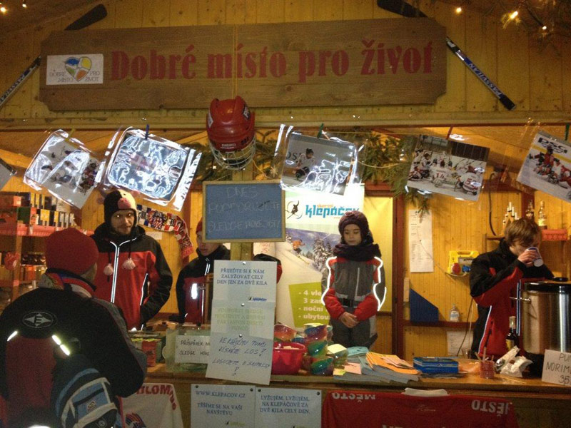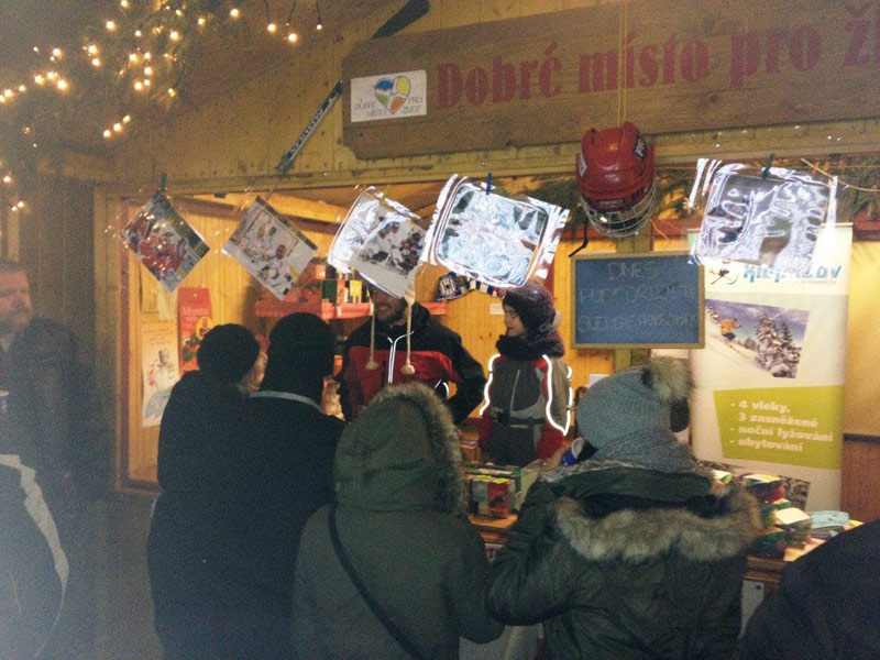 Vánoční stánek 2013: SŠ polygrafická a Ski areál Klepáčov pro Sledge hokejisty